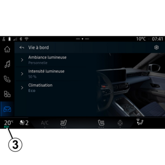 Na activering wordt een ECO waarschuwingslampje 3 weergegeven op het multimediascherm 1.